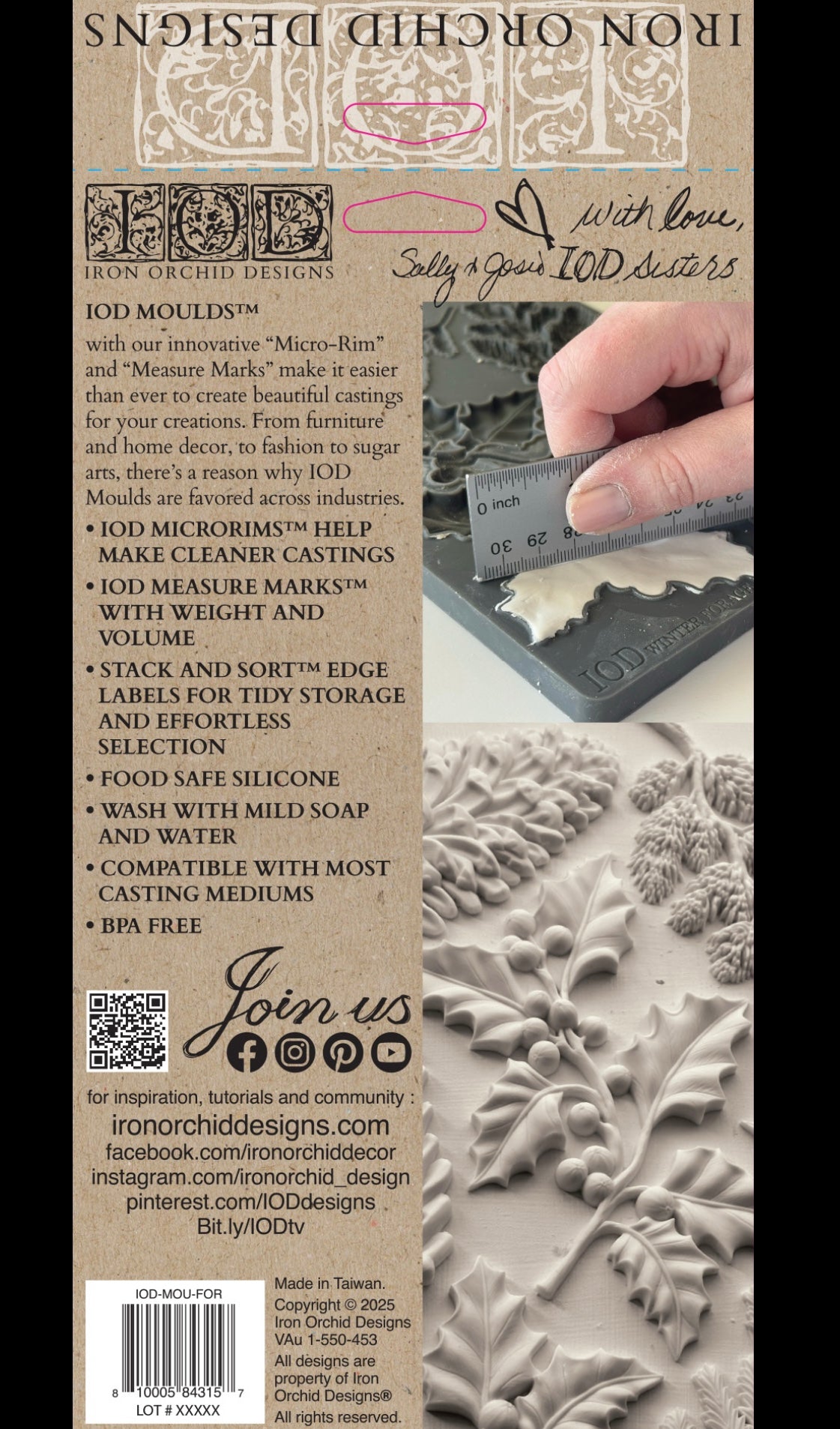 IOD Mould Introducing Winter Forage, a beautifully botanical mould dripping with just the right amount of winter drama. The freshly gathered sprigs and berries, and intricate pine cones invite woodsy inspired sophistication to your holiday makes. Winter Forage is organic and refined, like a bundle of foliage from the forest, ready to be arranged into something fabulous. Layer elements at the base of two tall vases to add interest, then place them on either end of your fireplace with a bundle of faux seasonal foliage. Nestle Winter Forage into corners of dressers and hutches, or embellish holiday frames and wood blanks for a dimensional finish. We especially love pairing Winter Forage with the Oak Leaves & Acorns Mould for even more variety and texture. Winter Forage is your go-to for sophisticated holiday keepsakes and seasonal accents.